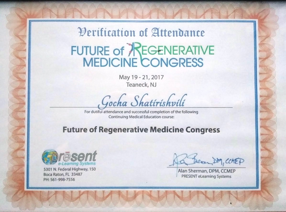 – 2017 – V EUROPEAN CONGRESS ON ASTHMA & COPD, IX GEORGIAN NATIONAL CONGRESS ON ALLERGY, ASTHMA & IMMUNOLOGY. Speech: Stem cell transplantation for the treatment of HCV infection related liver cirrhosis, Tbilisi, Georgia