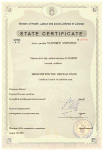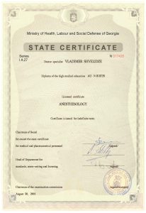 1995 Tbilisi Medical Academy – three months course in anesthesiology and resuscitology